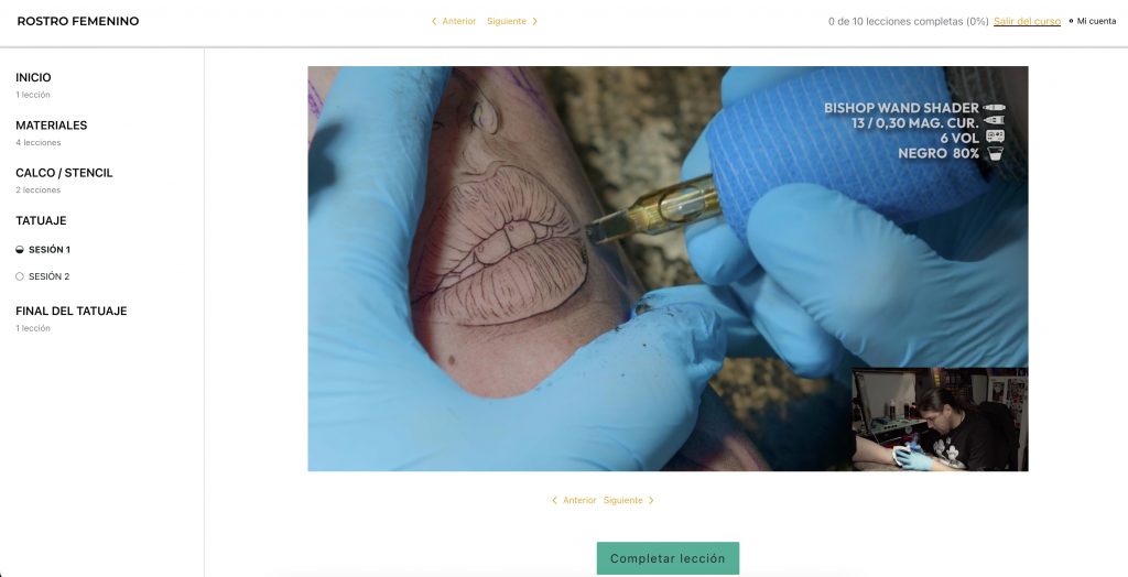 Con los seminario online puedes formarte en cualquier momento y lugar. Distribuido por bloques y lecciones podrás entrar al punto que quieras. Además de las explicaciones de Fred, no perderás detalle que la aguja y otros detalles gracias a los gráficos incrustados en el vídeo. Máquina, aguja, voltaje y tinta.